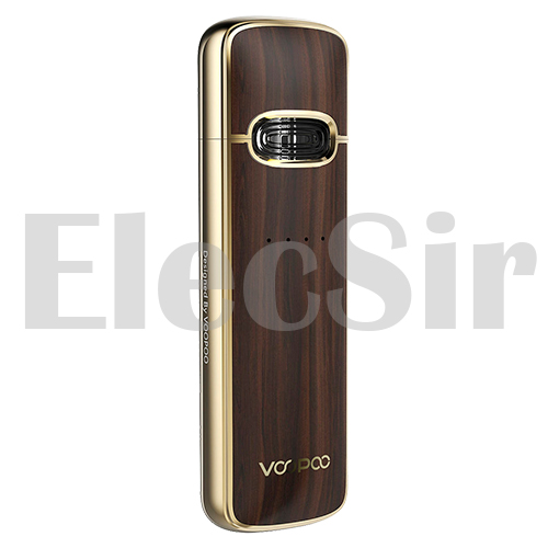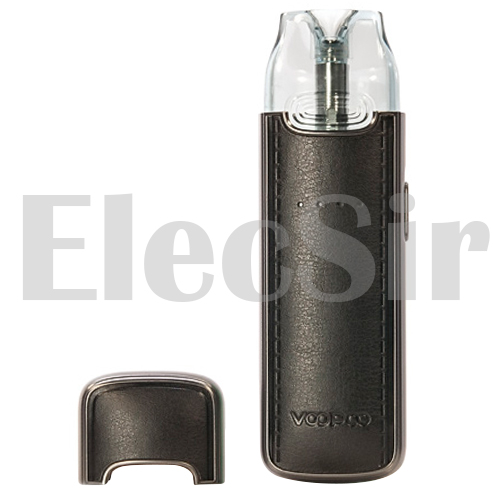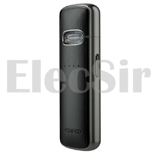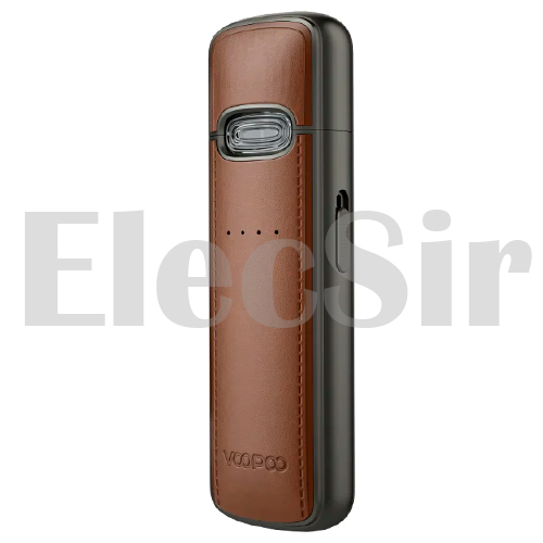 Топовый Voopoo Vmate E Pod Kit получил премиальную отделку, регулировку затяжки, приобрел приятный вес, сохранив вкус и формат картриджей. Оснащен встроенным аккумулятором на 1200 mAh и заряжается от Type-C. Отдельного внимания заслуживает тот факт, что корпус не просто металлический, а декорированный эко-кожей, благодаря чему девайс выглядит очень оригинально и достойно. Корпус оснащен гигиеническим колпачком, что здорово защищает от попадания грязи, пыли в картридж. В устройстве предусмотрена регулировка обдува, реализованная при помощи небольшого ползунка, расположенного на боковой грани устройства. Для того чтобы выставить необходимый уровень затяжки, необходимо перемещать его вверх или вниз.